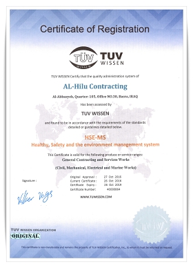 يتوافق نظام السلامة و الصحة المتبع في الشركة مع متطلبات الصحة والسلامة والأمن والبيئة الدولية، وتبذل الشركة الجهود من أجل ضمان الامتثال الكامل لتعليمات العمل والصحة والسلامة طبقا ل OHSAS 18001:2007 التي منحت لشركتنا منذ 21 نوفمبر 2013. نحن نقدر موظفينا فوق كل شيء ، و هذا هو الدافع وراء التزامنا تجاه الصحة والسلامة والبيئة على مستوى عالمي من خلال التوقع بأن جميع الموظفين قادرون على العودة إلى ديارهم من العمل دون وقوع إصابات اضافة الى الممارسات المتبعة لحماية البيئة. وقد أظهرت تجربتنا أن نظام الصحة والسلامة الفعال و الافضل يكون مدفوعا من أسفل إلى أعلى سلطة بين الموظفين مع دعم الإدارة الكامل والالتزام في الأعلى.